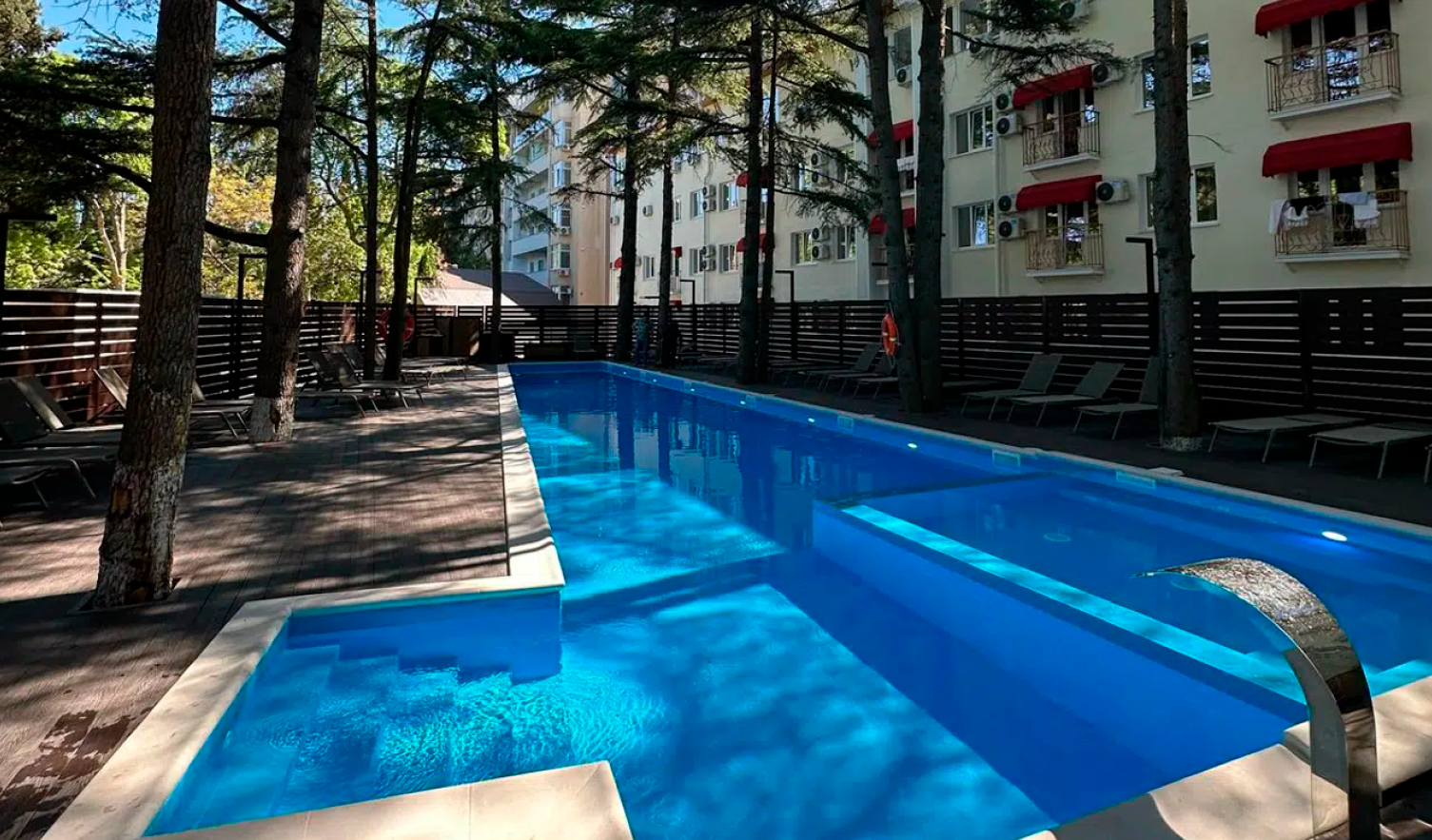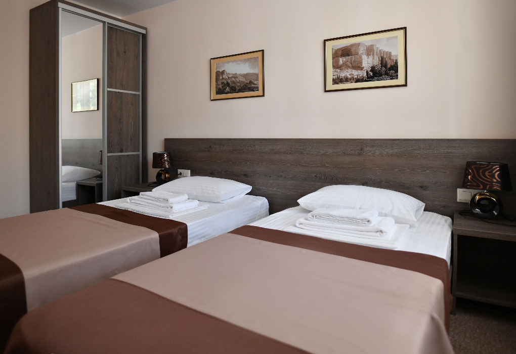 Номерной фонд пансионата представлен категориями: Смарт север, Смарт юг, Стандарт север, Стандарт юг, Комфорт, ПОЛУЛЮКС семейный север (2-х комнатный), ПОЛУЛЮКС семейный юг (2-х комн.), интерьеры которых оформлены в традиционных для отелей пастельно-шоколадных оттенках. Все номера оборудованы новой удобной комфортной мебелью, современной сантехникой и необходимой бытовой техникой (ТВ, кондиционер). Во всех номерах бесплатный Wi-Fi.